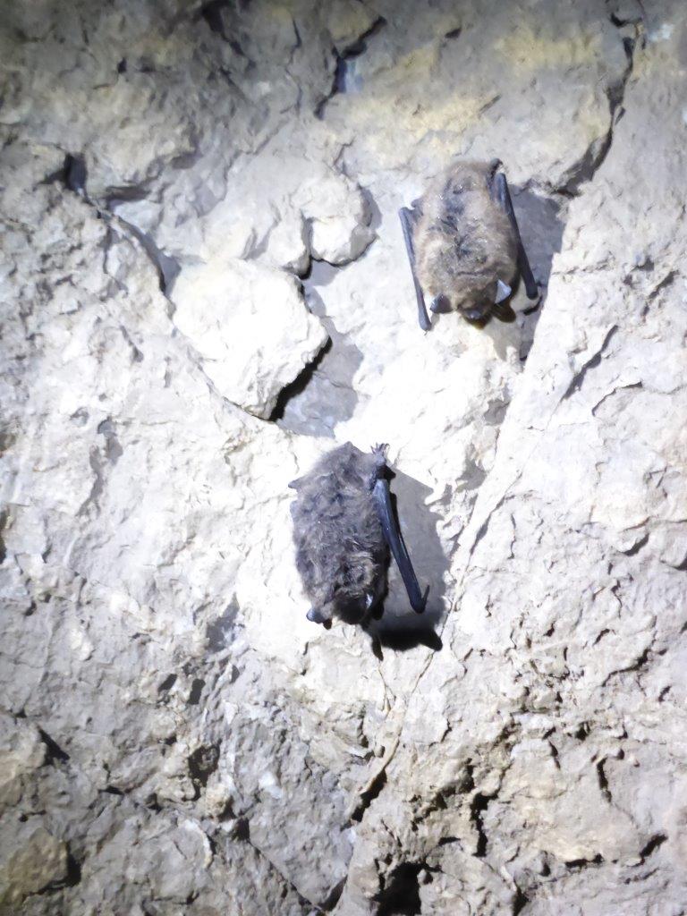 Bats live in the remote, back portions of many caves. These are mostly the Little Brown species, an important predator of insects such as mosquitoes, but harmless to man. If you are not looking for them, chances are you will not even see them. Please do not disturb or harass the bats, especially in winter when they are hibernating. Bats can carry rabies, so you should never try to touch or pick one up. Make sure all clothing and gear is decontaminated between caves to avoid the spread of White Nose Syndrome.